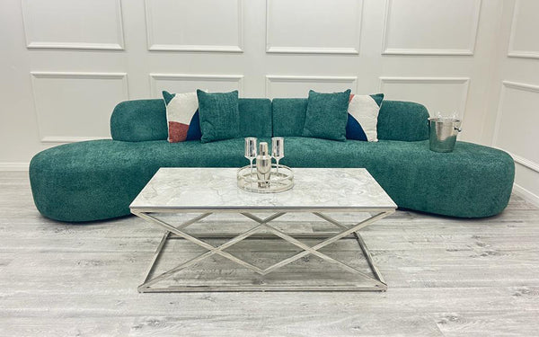 Add a touch of modern luxury to your living space with the Miami Curve Cinema Boucle Sofa. This uniquely curved sofa is designed for ultimate comfort and a stylish cinematic experience, perfect for home entertainment or lounging.